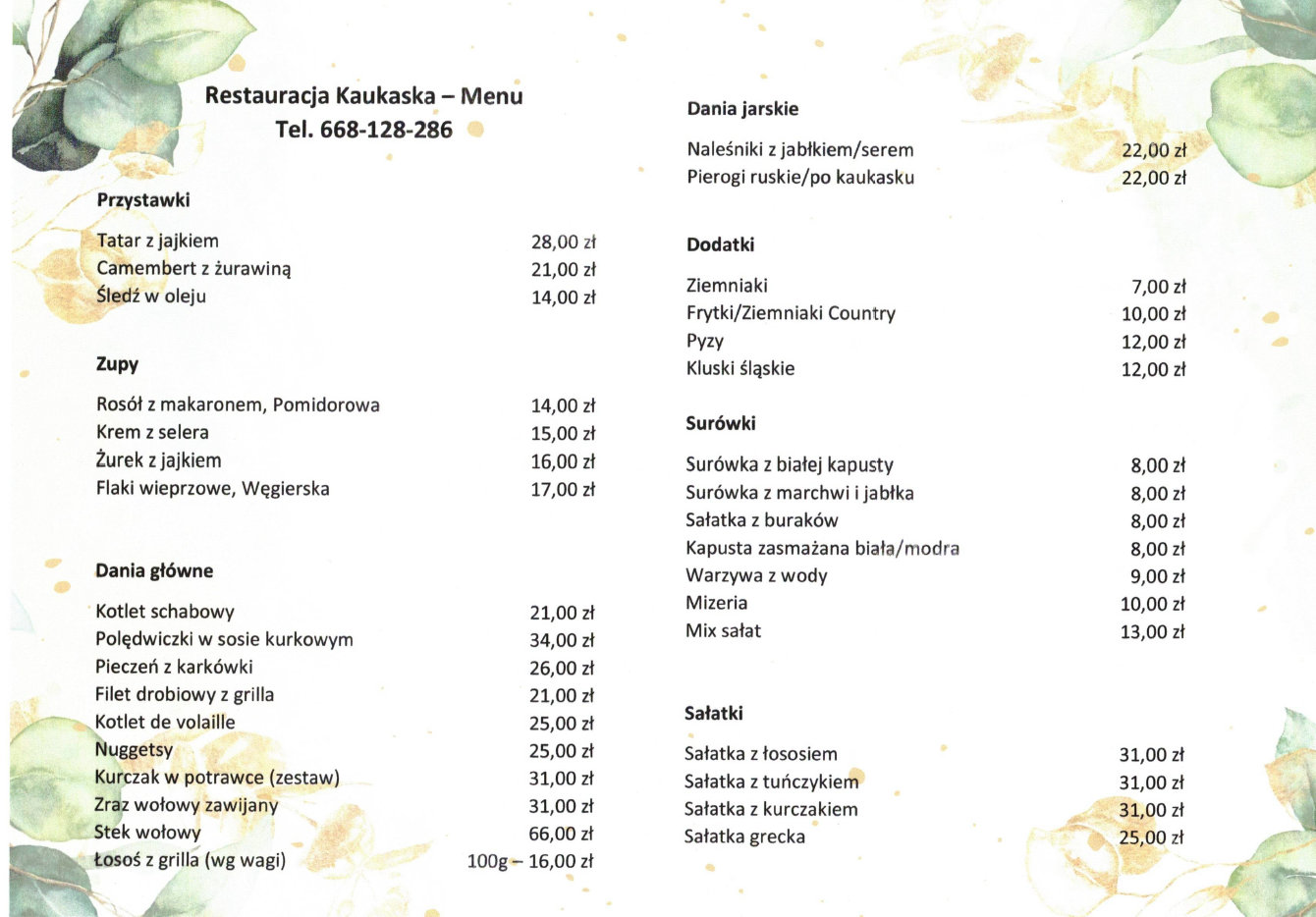 Restauracja "Kaukaska", to lokal mogący pomieścić do 180 osób.